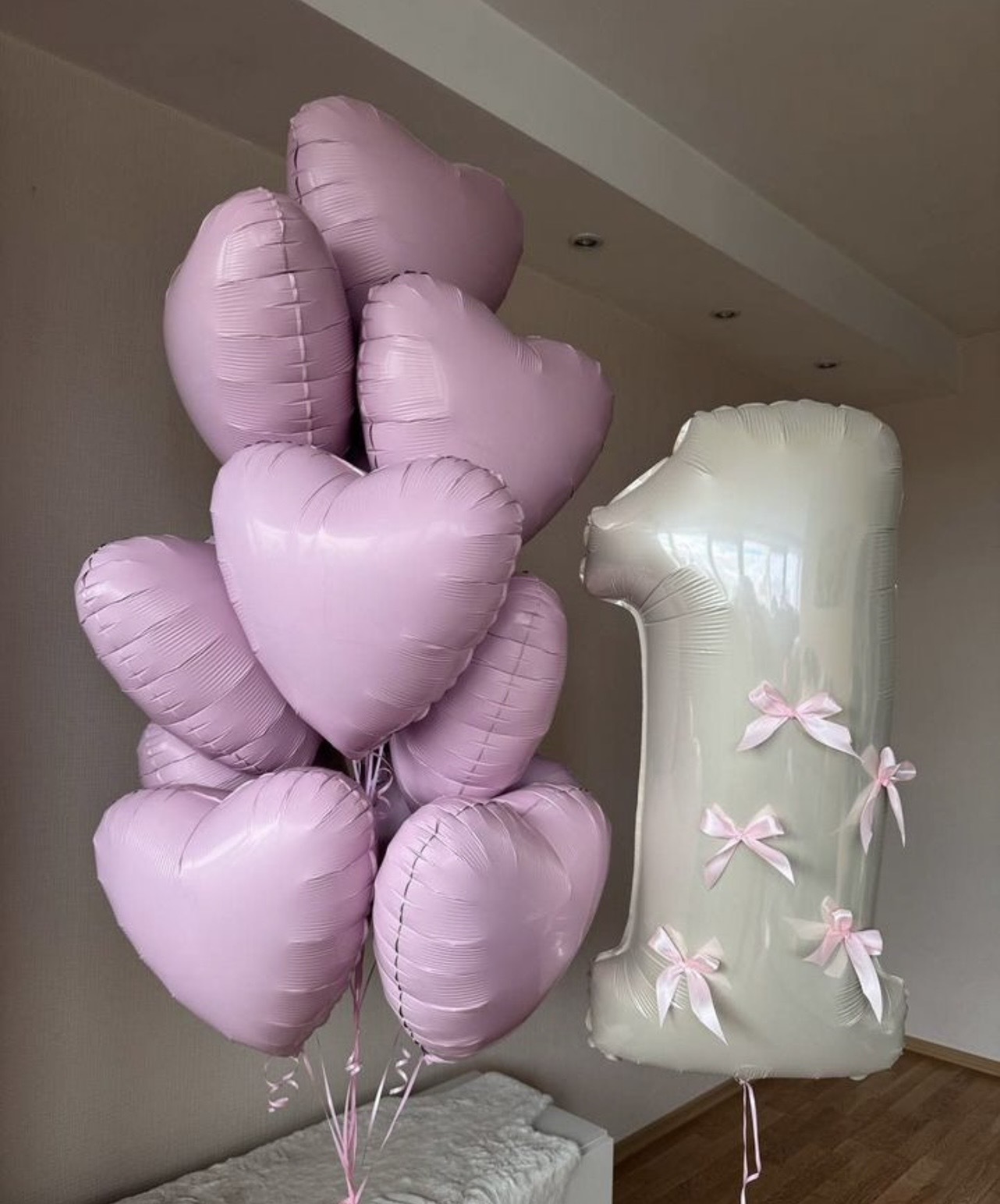 Цифра фольга с бантиками - 1 шт